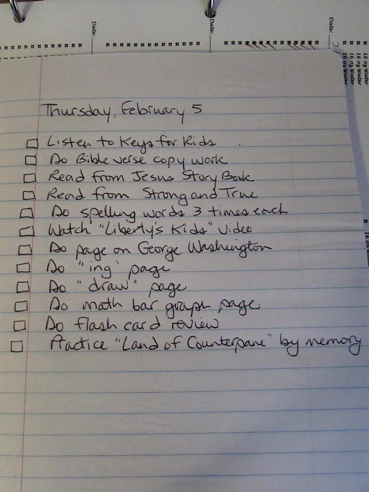 2:00: “She is eagerly checking off boxes. I have Vivaldi playing for her writing/copy work time, which always makes things happier and more productive. And she got 100% on her spelling, which is a huge milestone for her. So grateful to be finally conquering my insomnia/chronic pain issues so that I can have more stick-to-it-iveness, and focus!”
