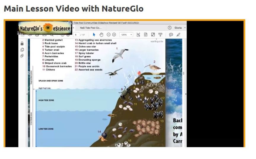 Each NatureGlo’s eScience includes a main video lesson, a slideshow which is used in the main lesson, a study guide the students can complete, and additional information and activities. For example, there may be several shorter videos with more information, suggested experiments, and web links to other related resources.