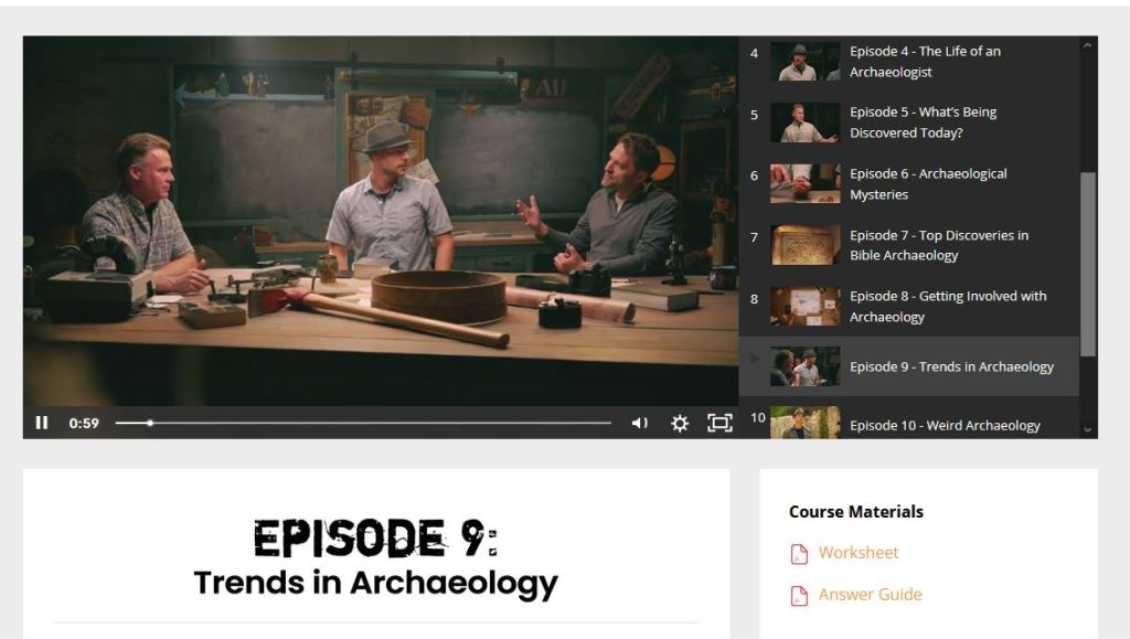 The videos in this course could stand alone for middle grades students or if you just wanted a basic understanding of archeology. However, the additional reading and materials help to make it a more complete high school level course. The course begins with a discussion of what archaeology means and then goes on through the impacts of archaeology, life of an archaeologist, current happenings in archeology, and more.