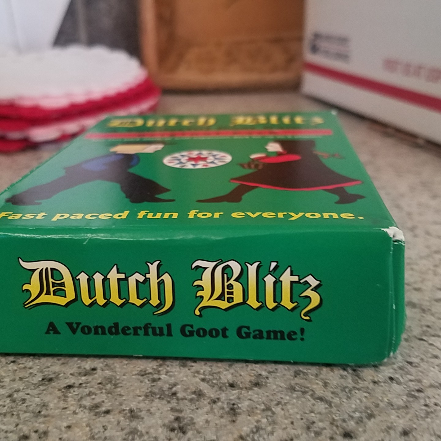 Dutch Blitz (This card game is so much fun and it is fast pace and gets you moving just a bit. It is great for any age, once they know their numbers. Even my teens enjoy a good game of Dutch Blitz.)