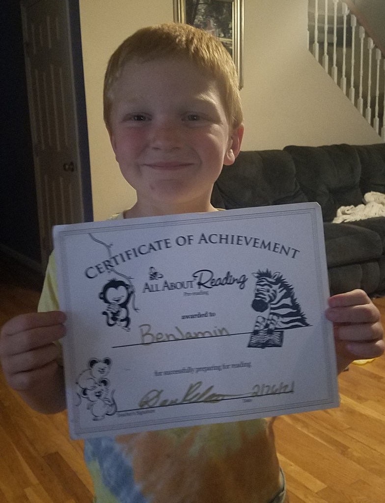 During his first grade year he completed All About Reading pre-reading and about half of All About Reading level 1. We are really enjoying the program and he is making great progress.