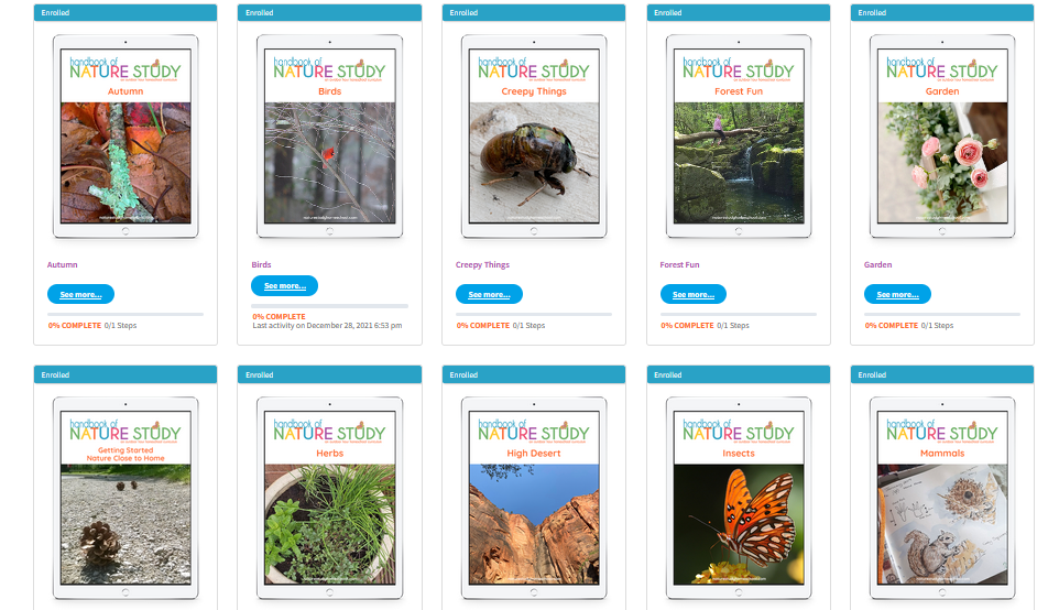 Thankfully, I found a program that will make it easy for me to implement nature study on our schedule and based on our interests. Years ago, we used the Outdoor Hour Challenges and other resources from the Handbook of Nature Study website to learn about nature study. As of last month, my friend Tricia Hodges is the new owner of that material, and they are revamping the materials and offering some great resources.