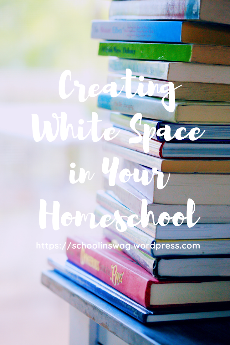 White space is simply empty (or white) space on the calendar, times you do not have plans and commitments. This includes times you do not plan to be ‘doing school,’ going out, having appointments, etc. White space in my homeschool is trying to have more time for school than I have plans to fill it.