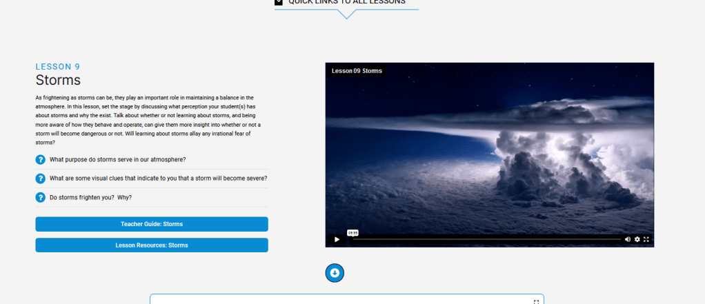 While this program is recommended for 5th grade and above, I have a 4th grader and a kindergartener who wanted to learn more about the weather. I primarily used this for my 4th grader, but I allowed the kindergartener to watch the videos with him. (The program will only score one student on the quizzes, but the company says the whole family is welcome to use the rest of the content.)