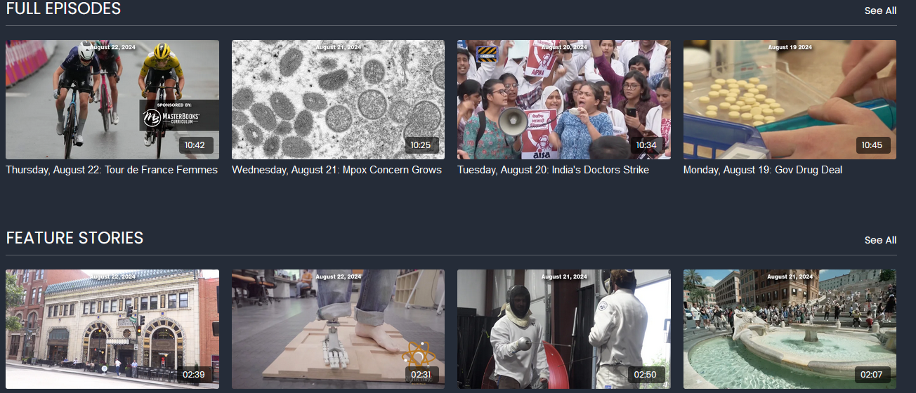 After the Bible, World Watch is our second priority. We even kept these two components when we were traveling last spring. If you are not familiar, World Watch is a news program with a Christian perspective designed for students. It is ten minutes a day and covers a variety of major news topics and fun interest stories.