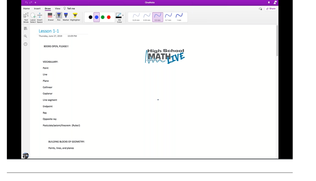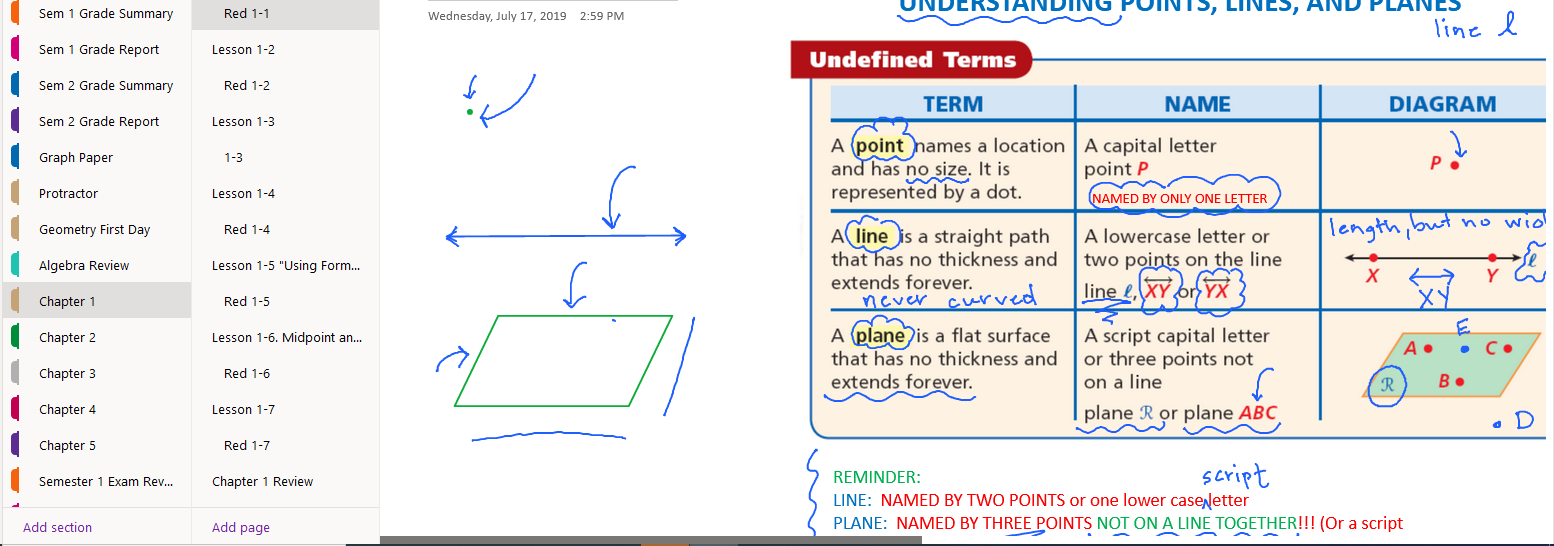 Each student has a teaching notebook located in one drive. This notebook has teaching notes for each lesson, links to virtual resources, and the student’s grade book. The teacher inputs the quiz and test grades into this notebook.