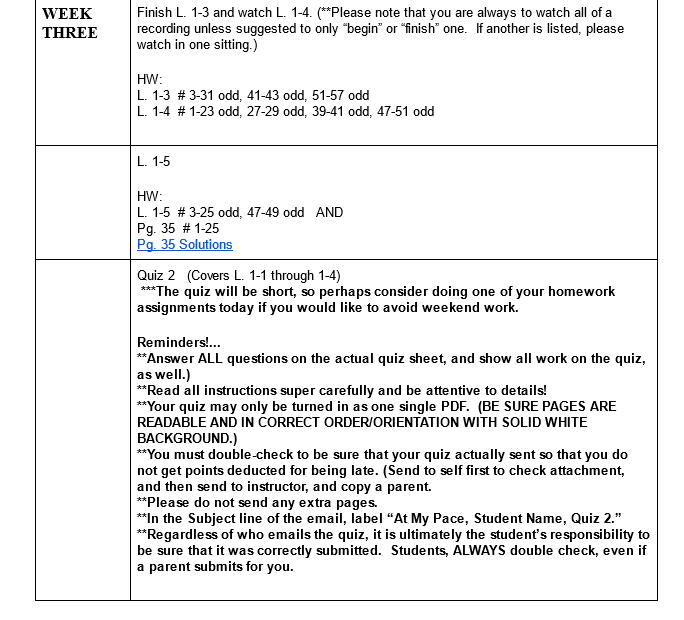 Since this is an “At My Pace” course students are not required to work through the course on a particular schedule. So even though it is laid out in a week-by-week format they can work through it at their own pace.