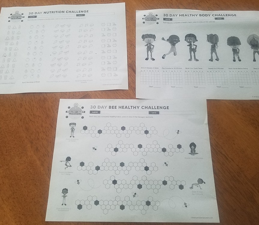 The Healthy Habit Trackers are a set of twelve different trackers designed to help children keep track of various things, including exercise, nutrition, and even chores.